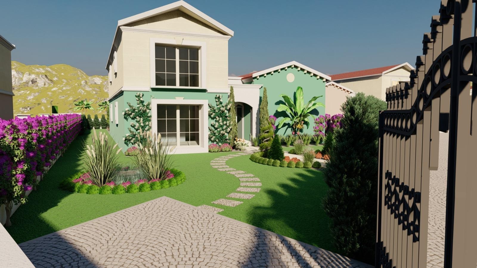 Villa with garden Counter Top Cooker (Arçelik) Detached Entry Laundry room Toilet Dressing room Closet Wide Hallway Cloakroom Master Bathroom Steel Door (ÜÇASLAN) American kitchen Terrace Ceramic Floor (Bien) Spot Lighting Blinds/Blinds Fireplace PVC Joinery (Winsa) American Door Cellar Faucet Faucet Faucet (Grohe) Hood (Arcelik) Entrance / Ramp Oven (Arcelik)