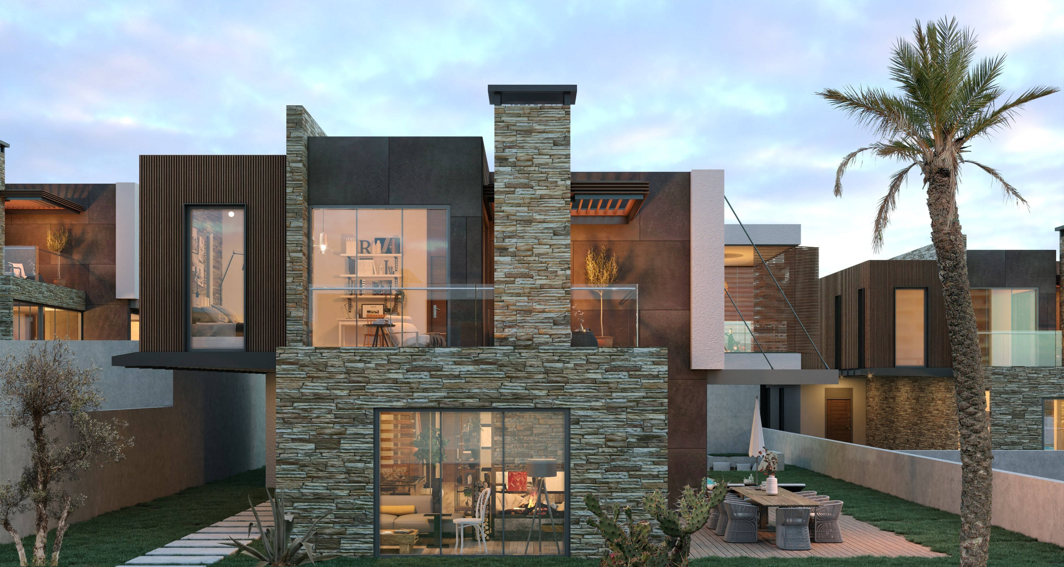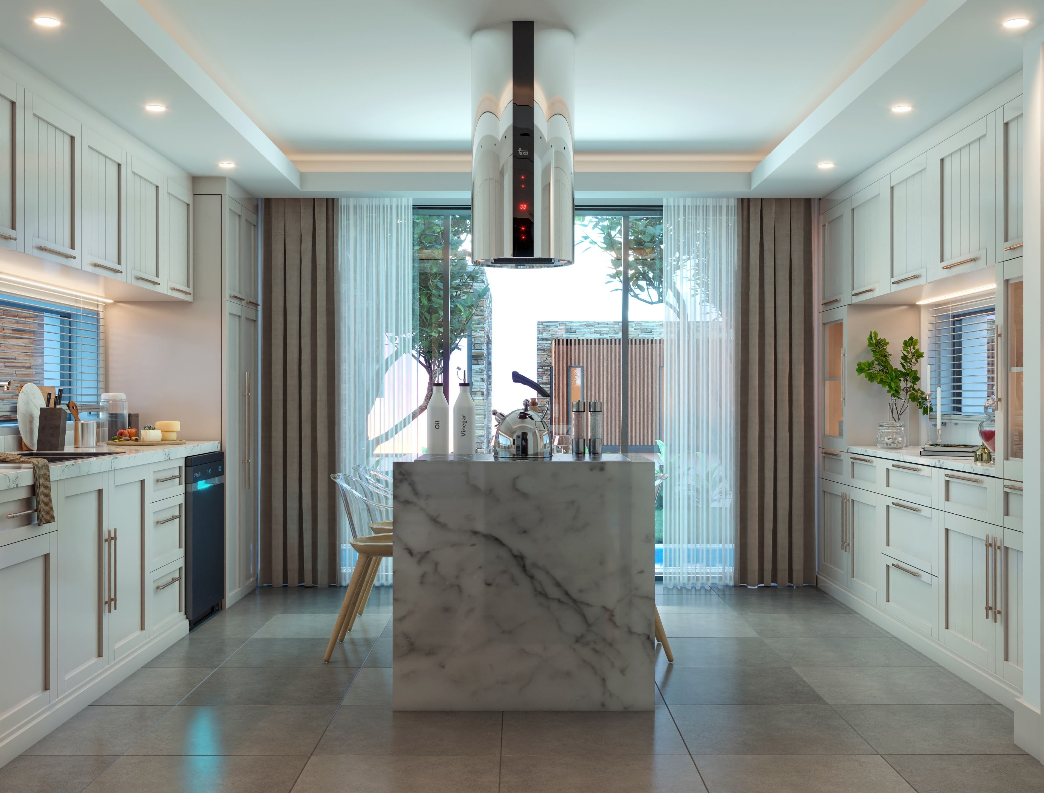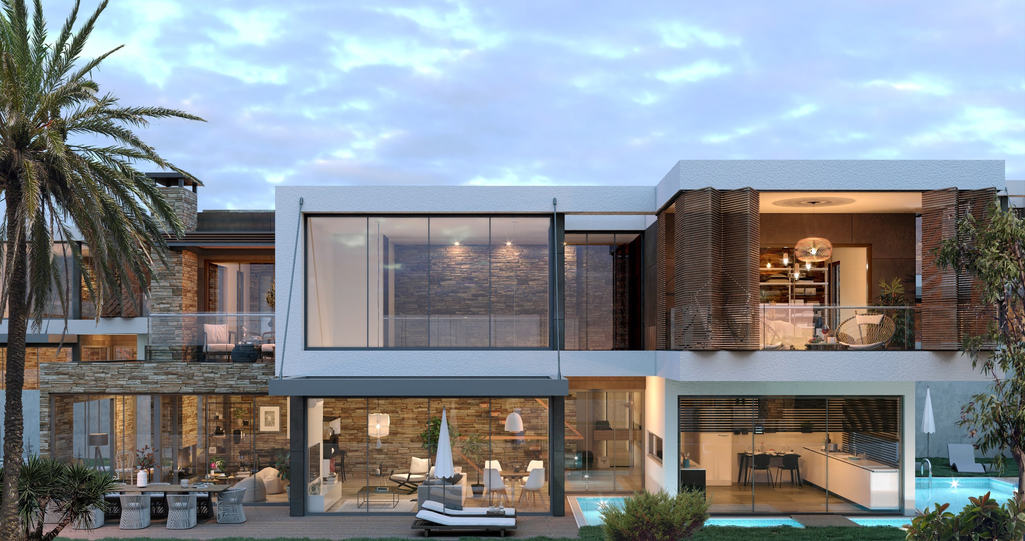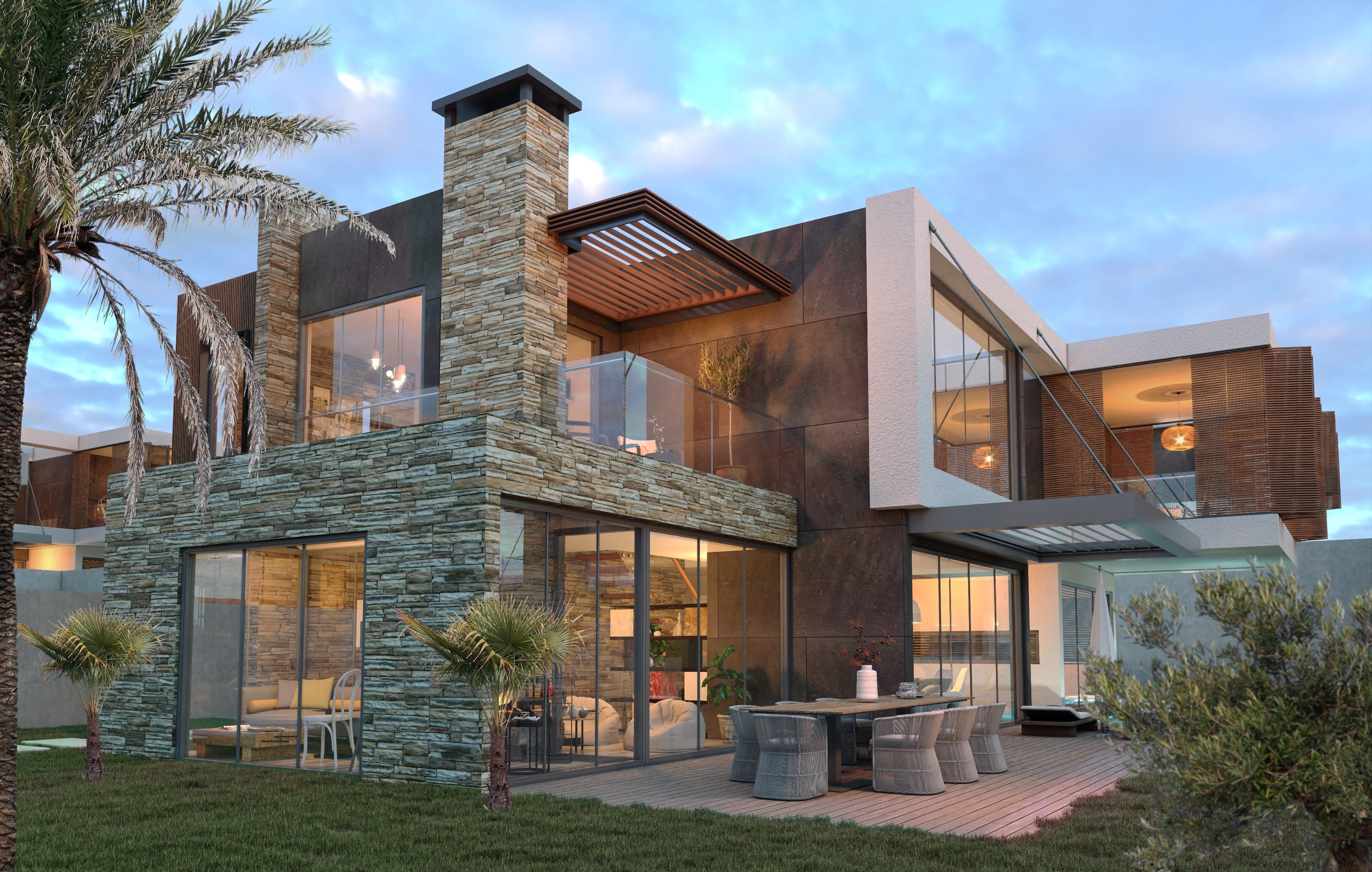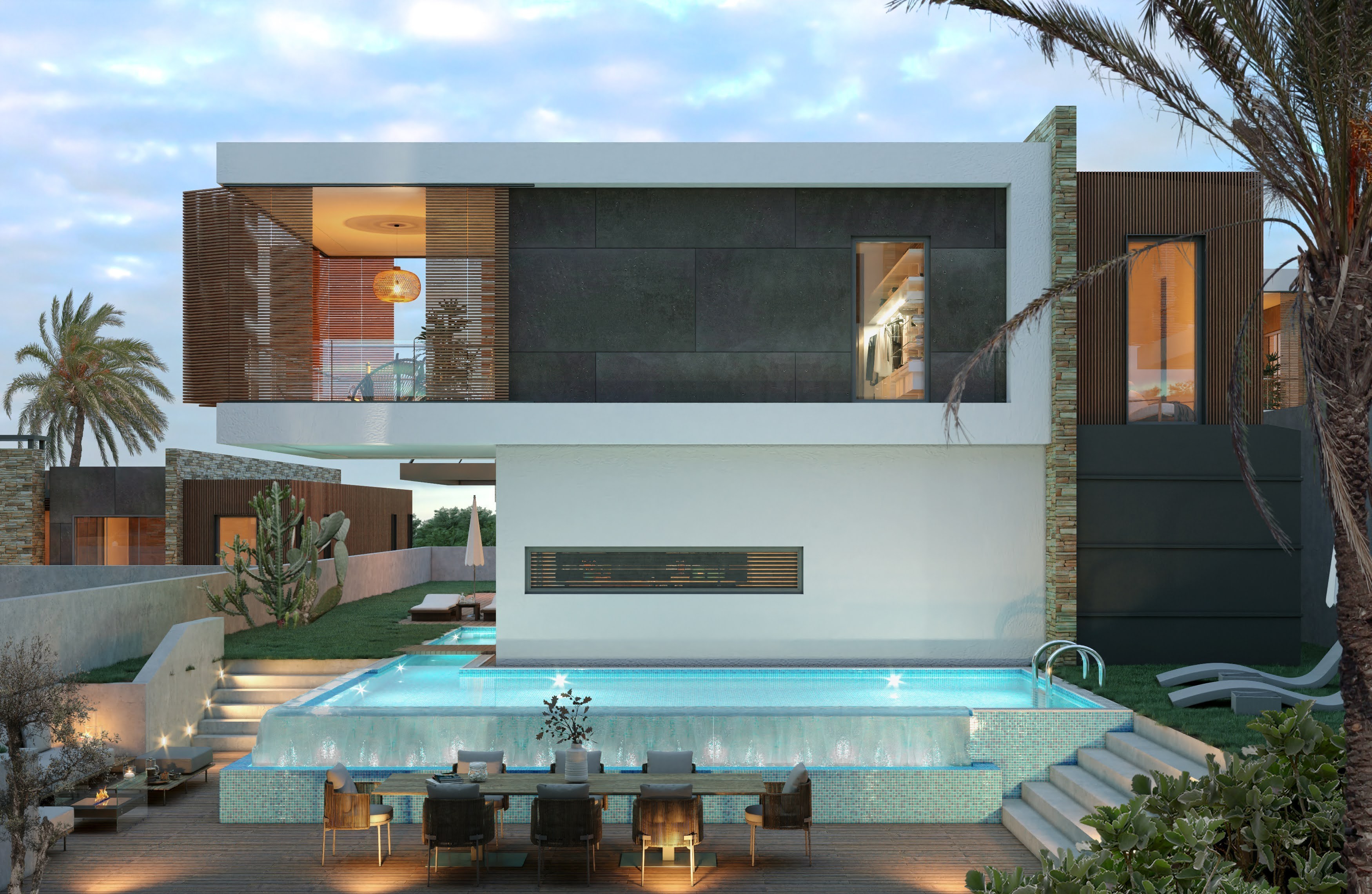 The villas are designed as 3 floors, with an elevator inside, extremely useful and stylish.