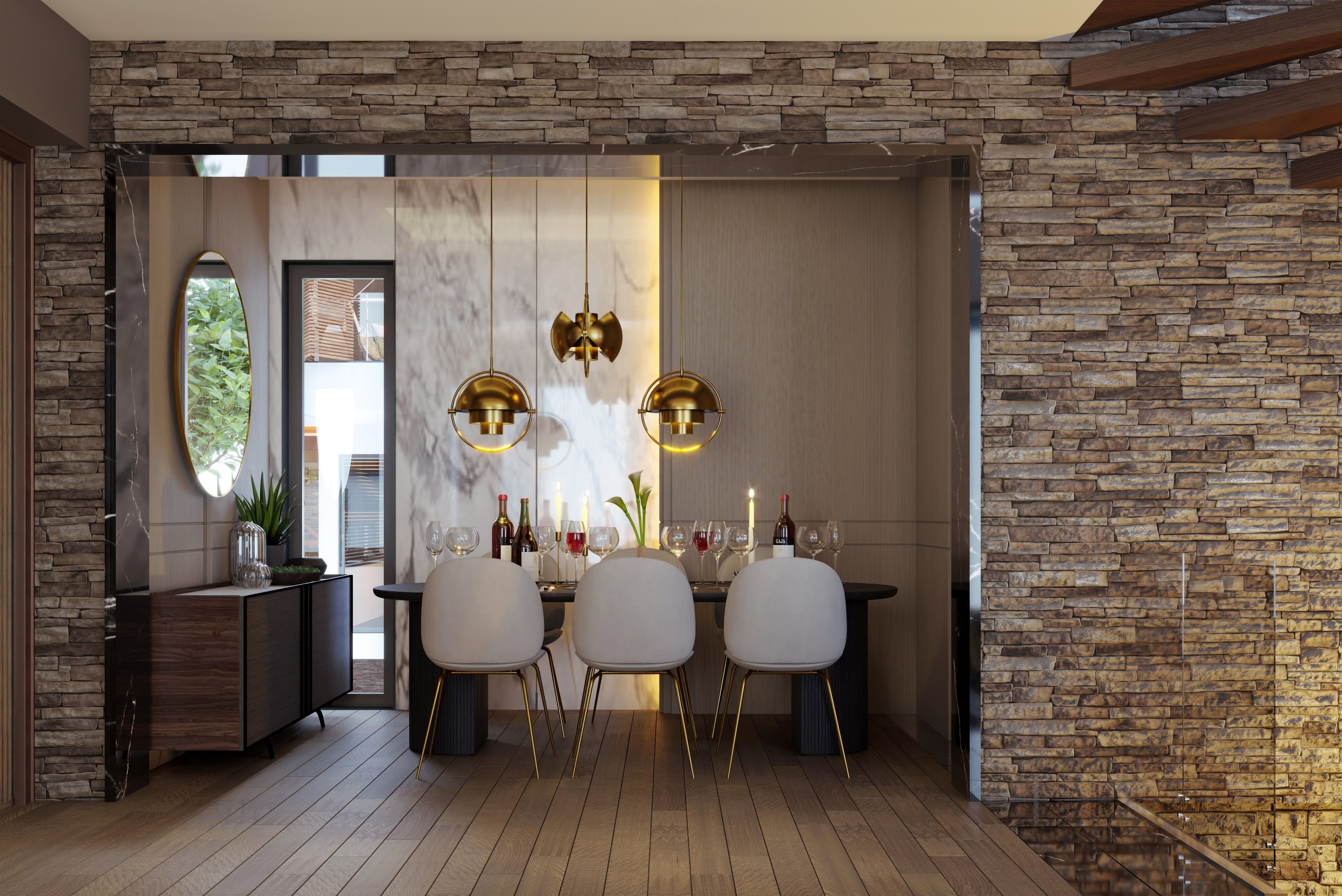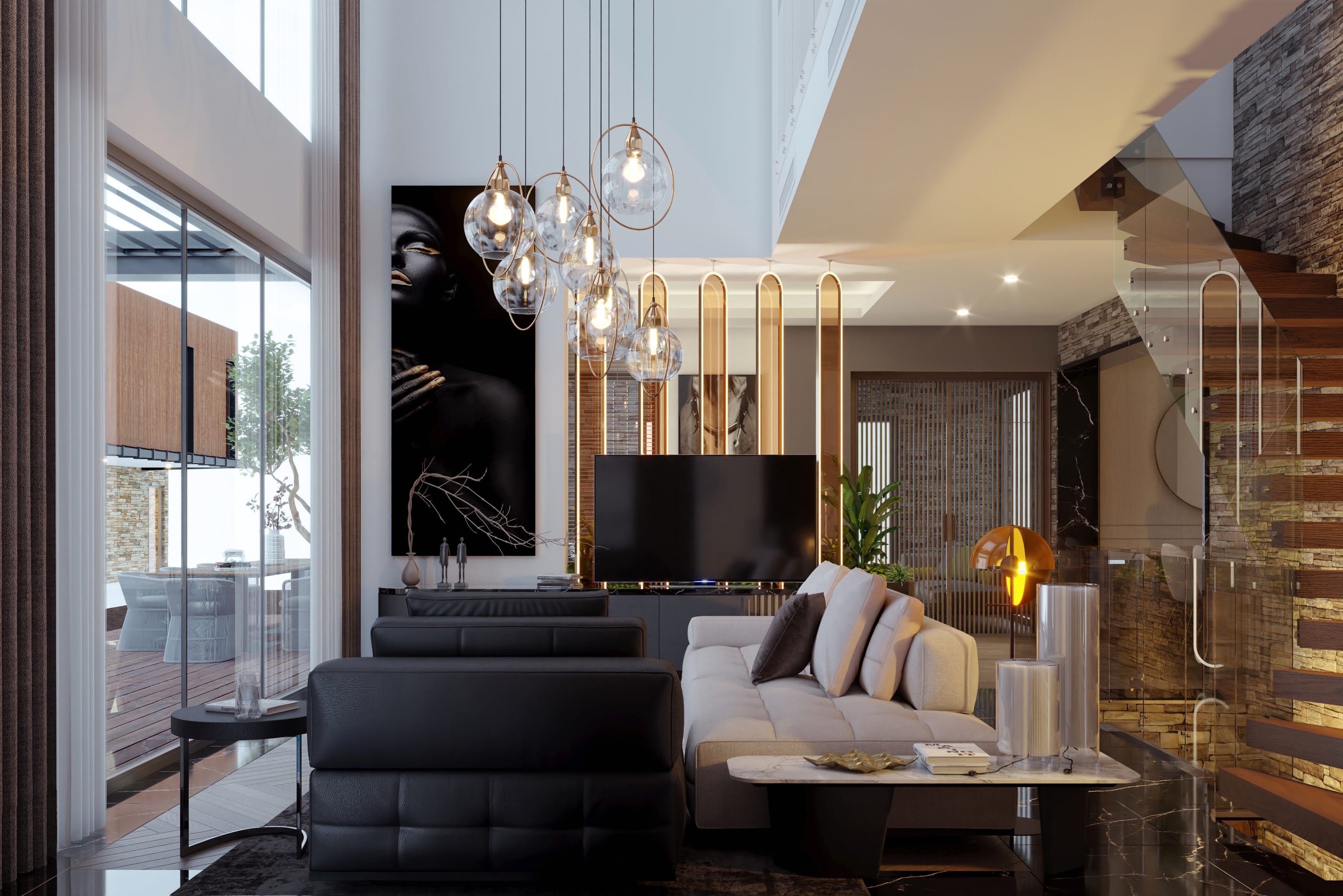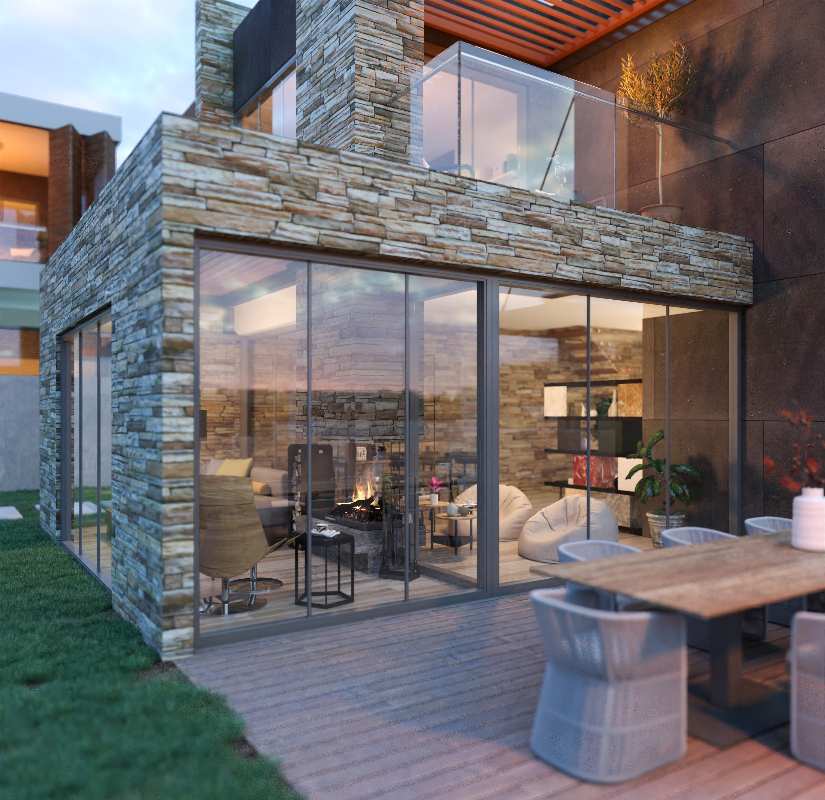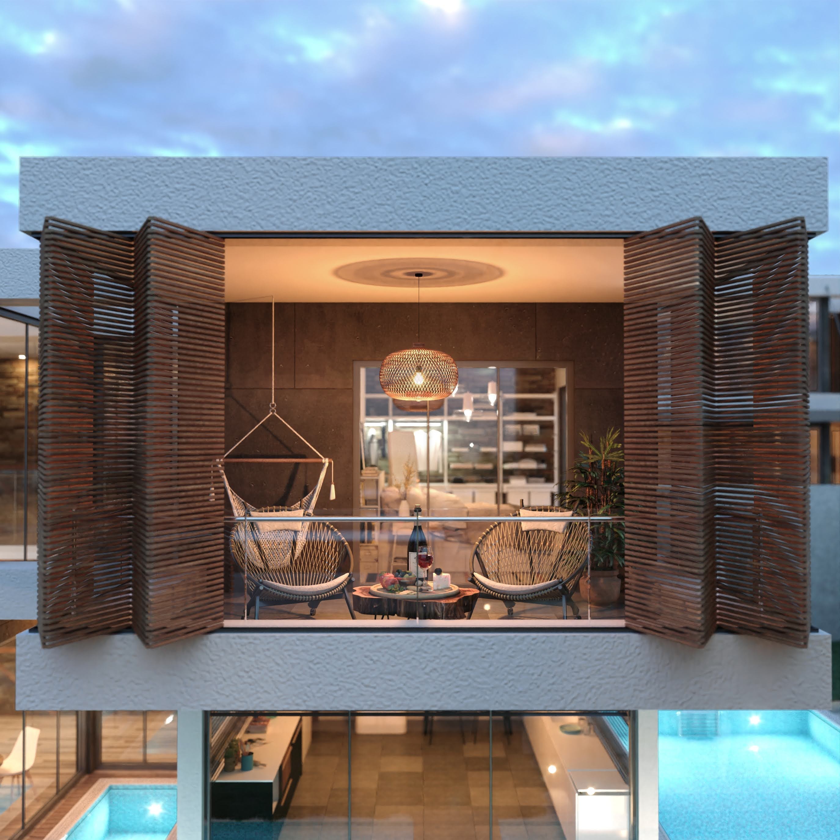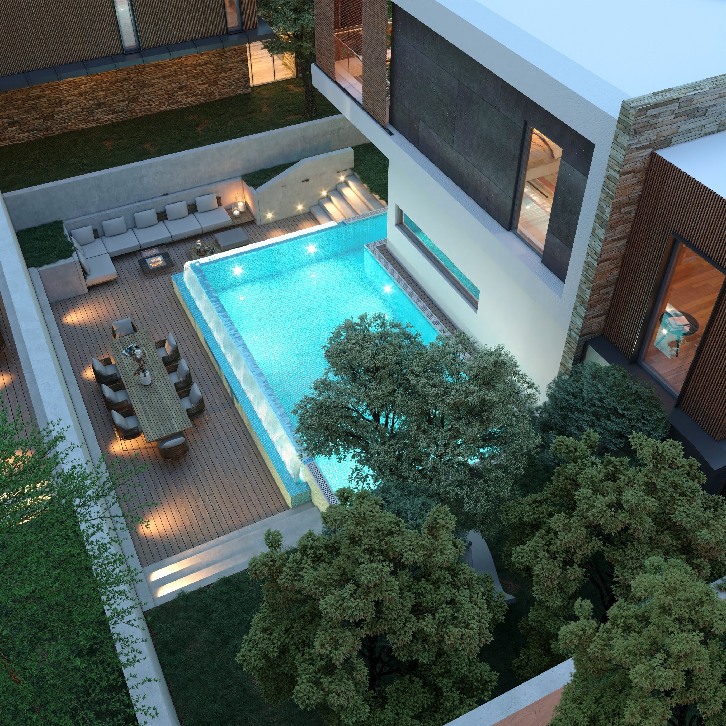 The villas are designed as 3 floors, with an elevator inside, extremely useful and stylish.