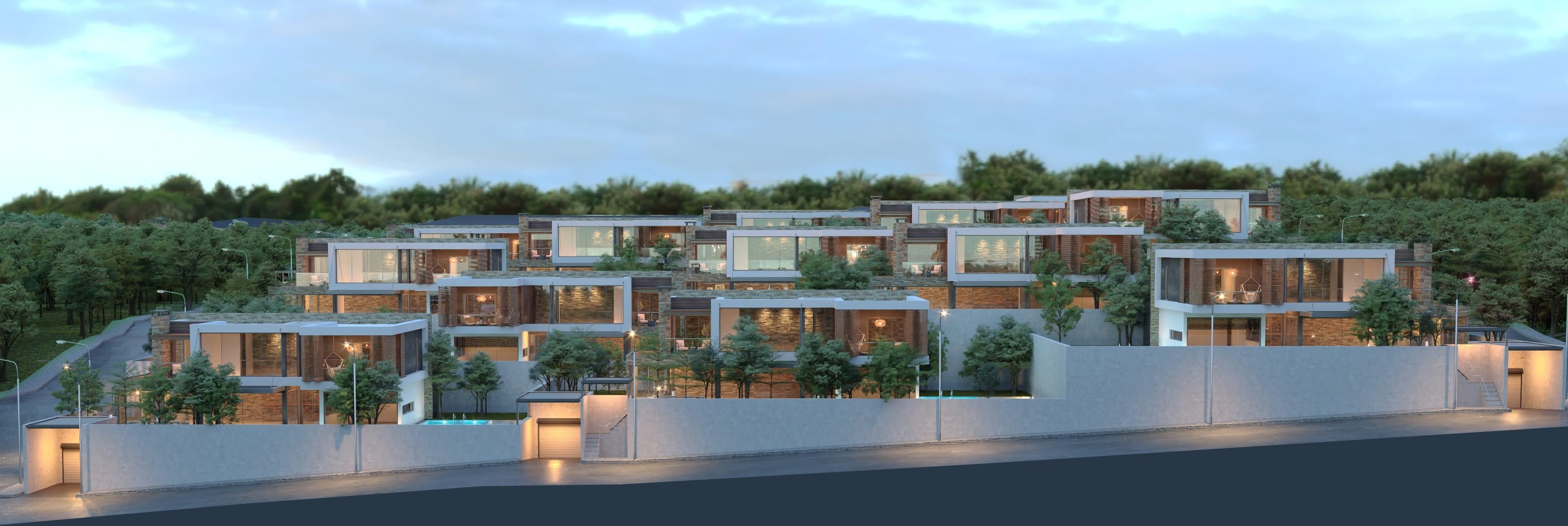 It consists of 13 private villas and 2 blocks of 28 flats. The land shares of our villas vary between 450 m2 and 750 m2 according to the land type.
