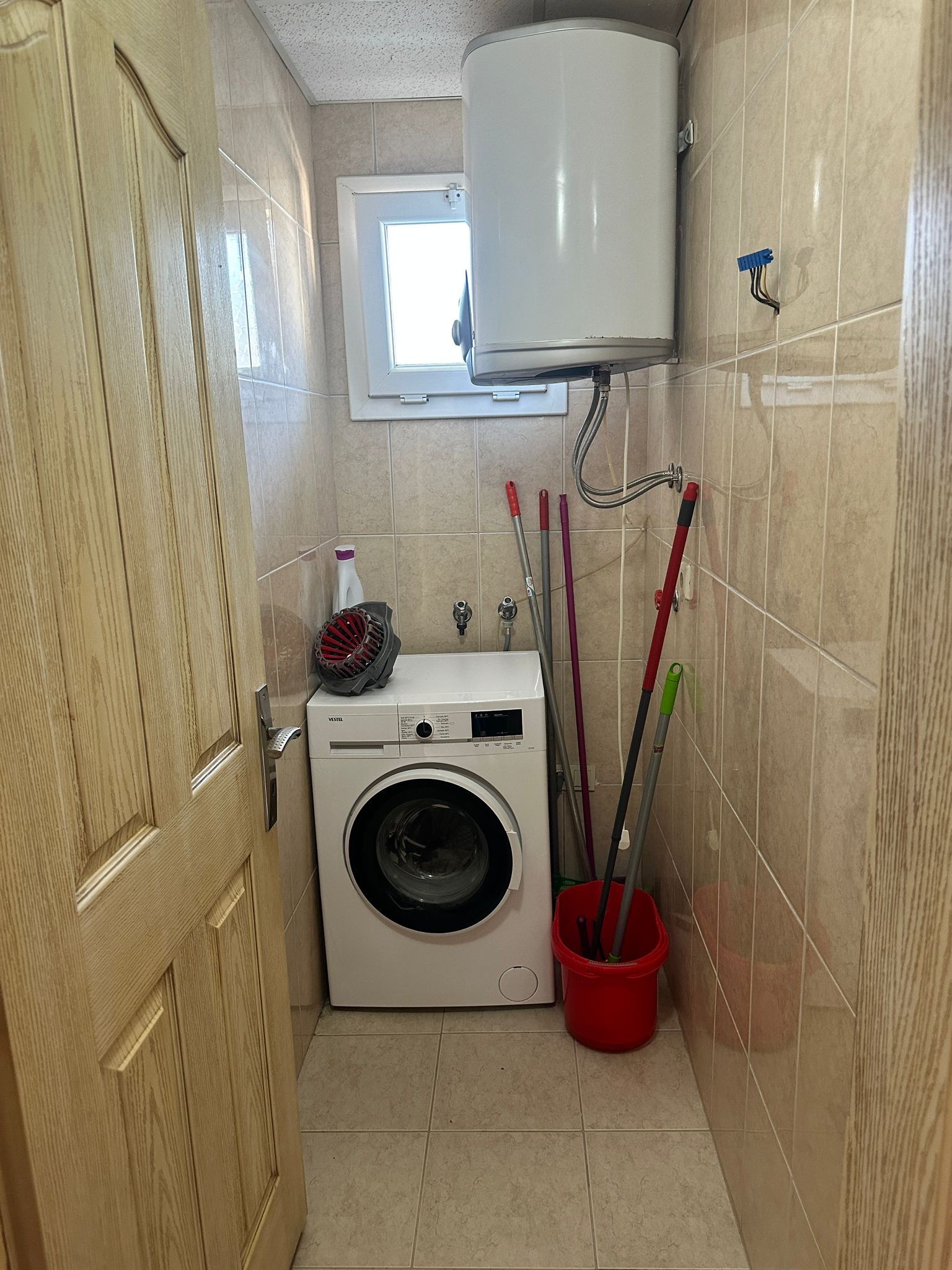 On the second floor there is a toilet, laundry room, kitchen, living room and balcony..