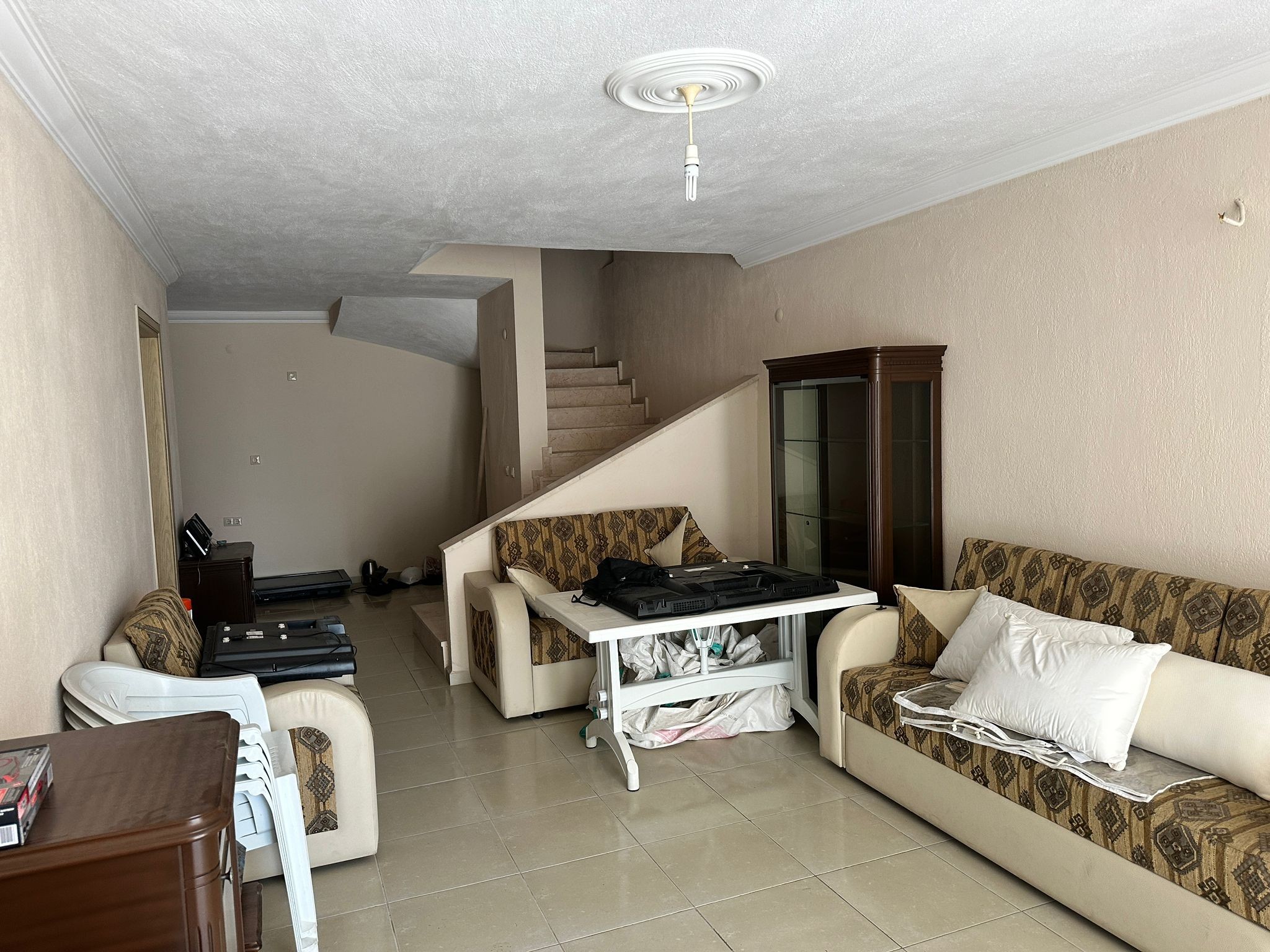 On the 1st floor there is a living room, 2 rooms and a bathroom.