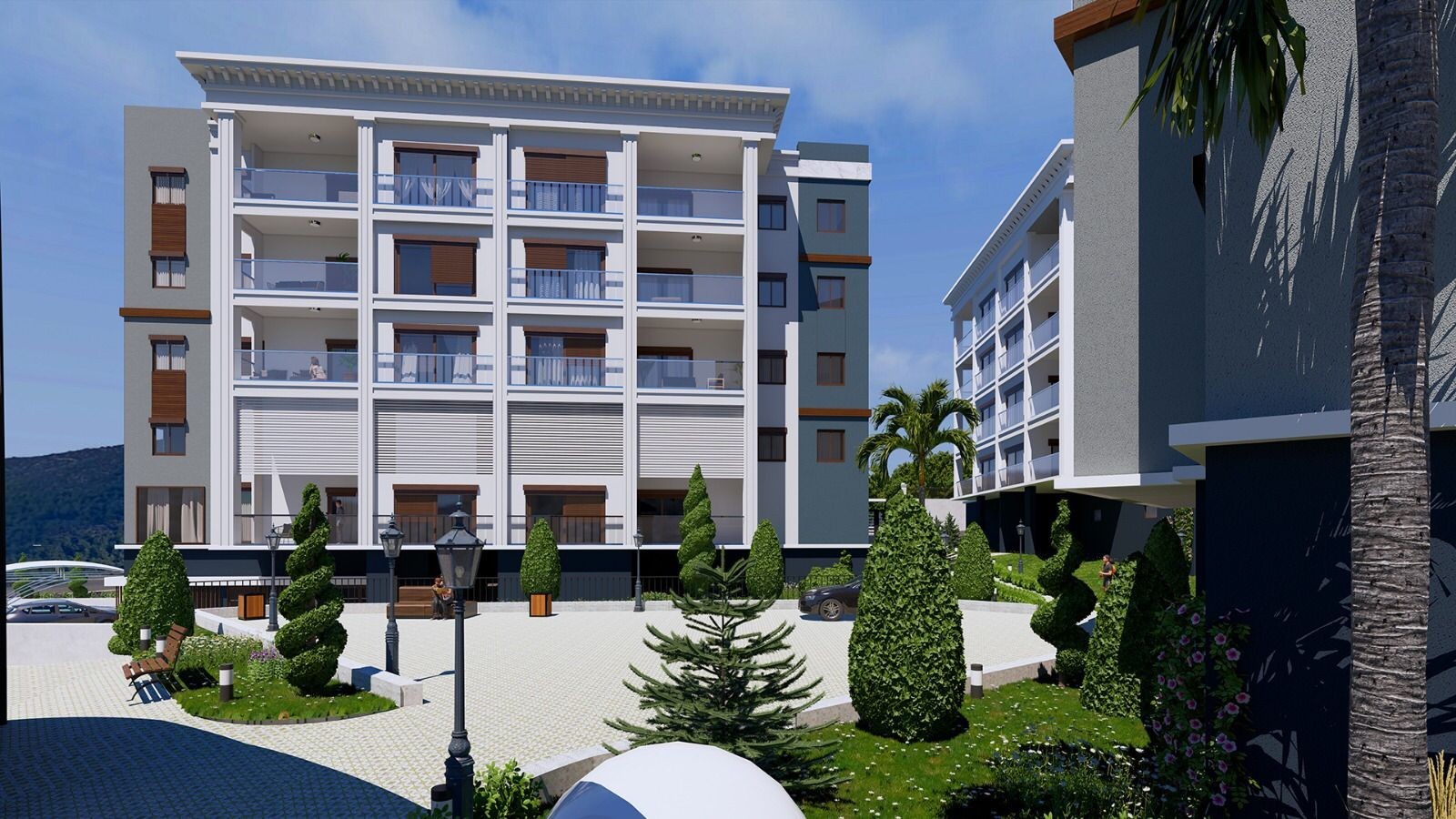 Smart Home System - Underfloor Heating System - Concealed automatic blinds for each flat - 24/7 security / camera system - Fire detector in flats - Large, spacious and useful apartments up to 145 m2 - Open and Closed Parking Lot - Outdoor and Indoor Swimming Pool - Fitness Center - Children's playground - Private corporate shopping center for the site and elite neighborhood - A great investment opportunity with launch prices and attractive payment terms.