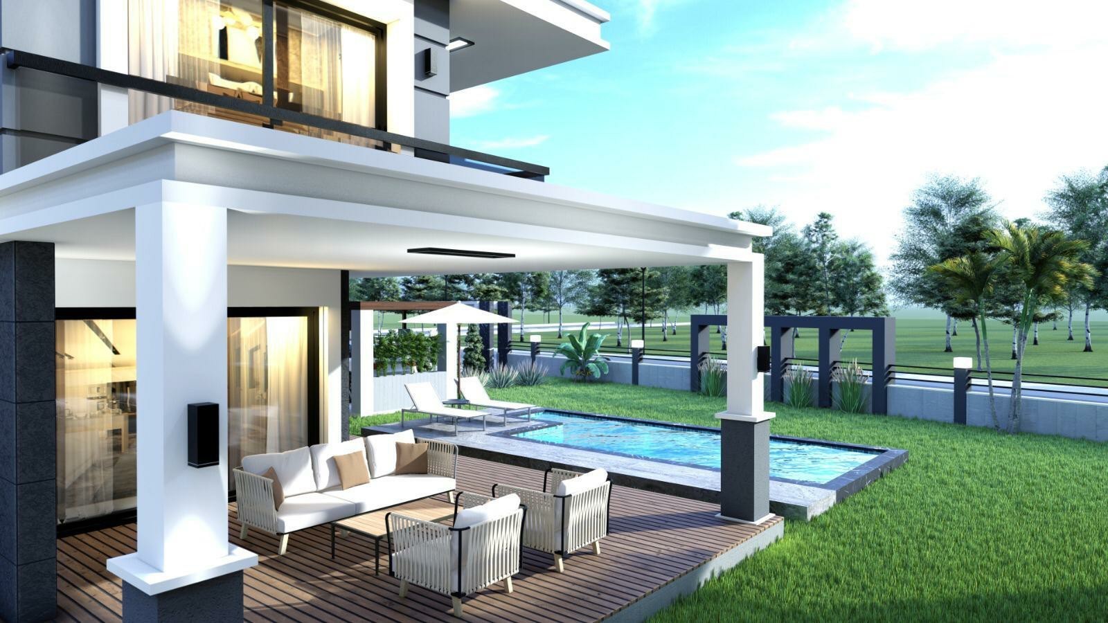 At the entrance of a single residence* Boat with detached private pool, 192 m2 area, 1.5 km to the sea, and a communal car, heated closed garage, automatic shutter Alarmm fire detector 3+1 garden forest garden 24/7 fire extinguishing May 2022